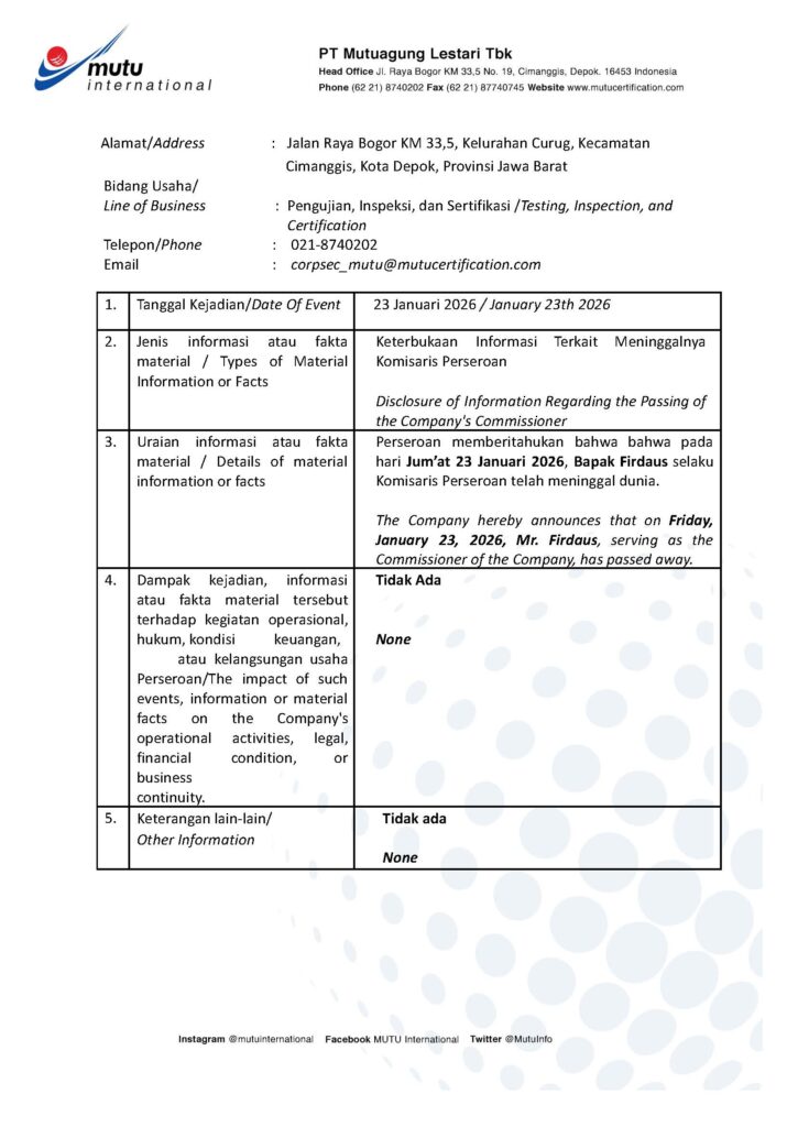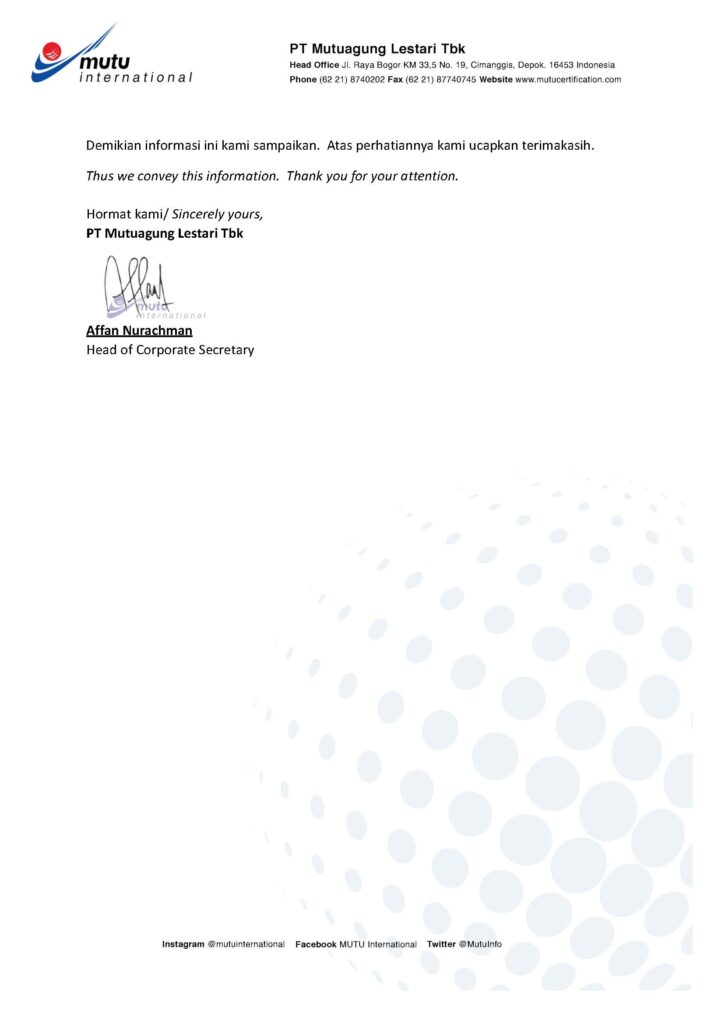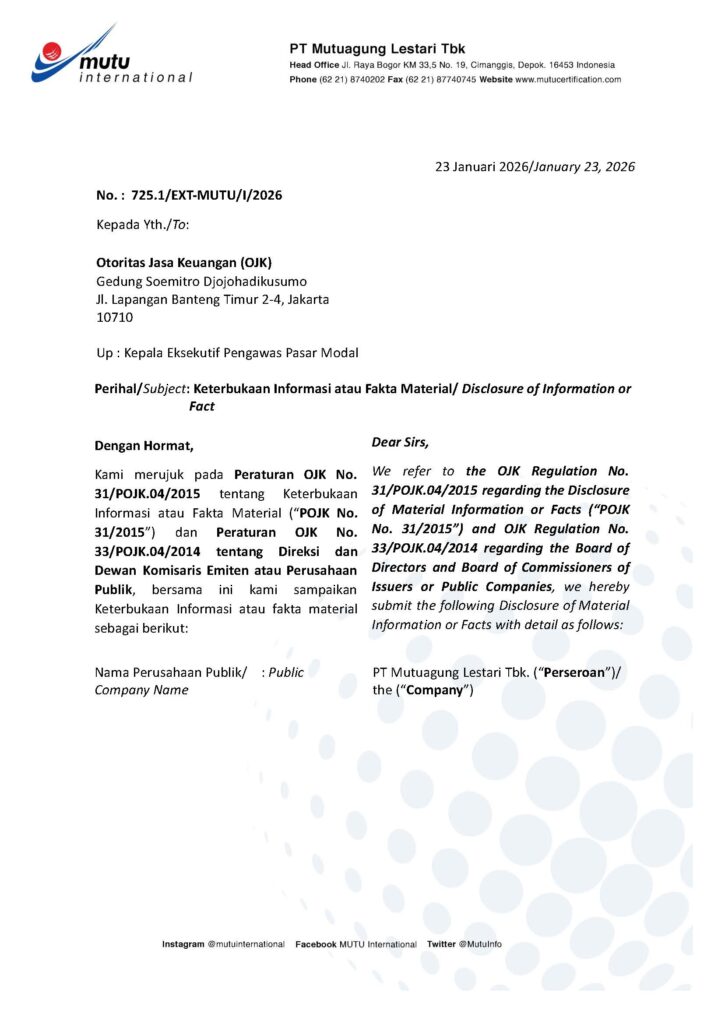 Perihal/Subject: Keterbukaan Informasi atau Fakta Material/ Disclosure of Information or Fact